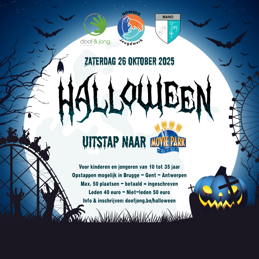 Op zaterdag 26 oktober trekken we samen met Jeugdwerk Nowedo en Mano met de bus naar Movie Park in Duitsland! Tijdens Halloween is het pretpark volledig ondergedompeld in griezelige sferen. Zodra de volle maan opkomt boven Horrorwood Studios, begint jouw spannendste avontuur. Durf jij de confrontatie aan te gaan met monsters, zombies en seriemoordenaars uit de engste horrorfilms? Mis dit niet en schrijf je snel in!