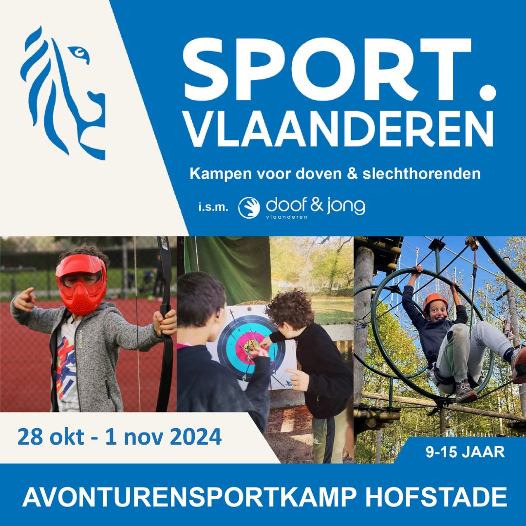 Niets leuker dan de frisse herfstlucht opsnuiven en heerlijk buiten te spelen en sporten. Van maandag 28 oktober tot vrijdag 1 november organiseren we in samenwerking met Sport Vlaanderen in Hofstade een avonturensportkamp voor kinderen van 9 tot 15 jaar. Er zijn nog enkele plaatsen vrij, dus je kan je kind nog steeds inschrijven. Klik op de knop hieronder voor meer informatie over dit kamp.